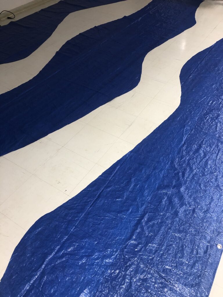 Nesse contexto e a partir da abstração do cenário do lago, Flutua criou uma biruta e uma espécie de onda esvoaçante a partir de resíduos e lona plástica. A biruta foi usada para representar o efeito do vento na narrativa. Já a outra peça foi estruturada em uma haste e apoiada nos ombros do ator Eduardo Gasperin durante a encenação de uma grande onda que se movimentava no Titicaca.