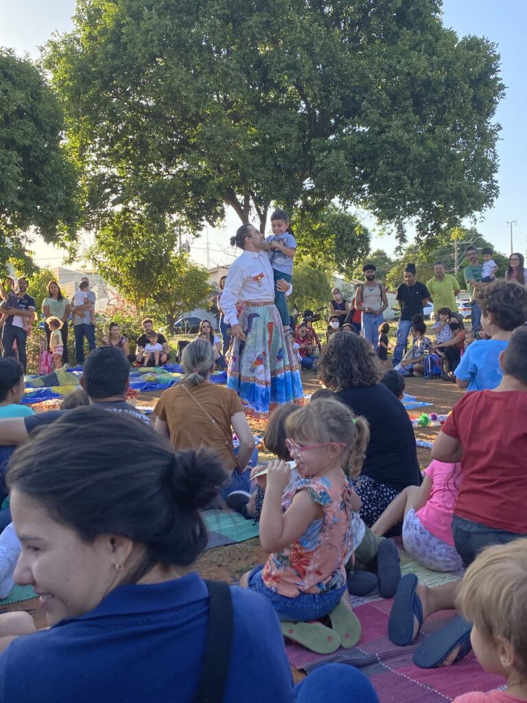 ‘’MBYKY – Recontando Histórias’’ trouxe narrativas dos povos originários das margens do Lago Titicaca, localizado na divisa entre a Bolívia e o Peru, na voz das crianças, protagonizando uma peça delas e para elas. Com enredo inspirado na cultura andina e cenário produzido com a ajuda de pequenos, o espetáculo deu vida para as narrativas latino-americanas de uma forma leve e didática.
