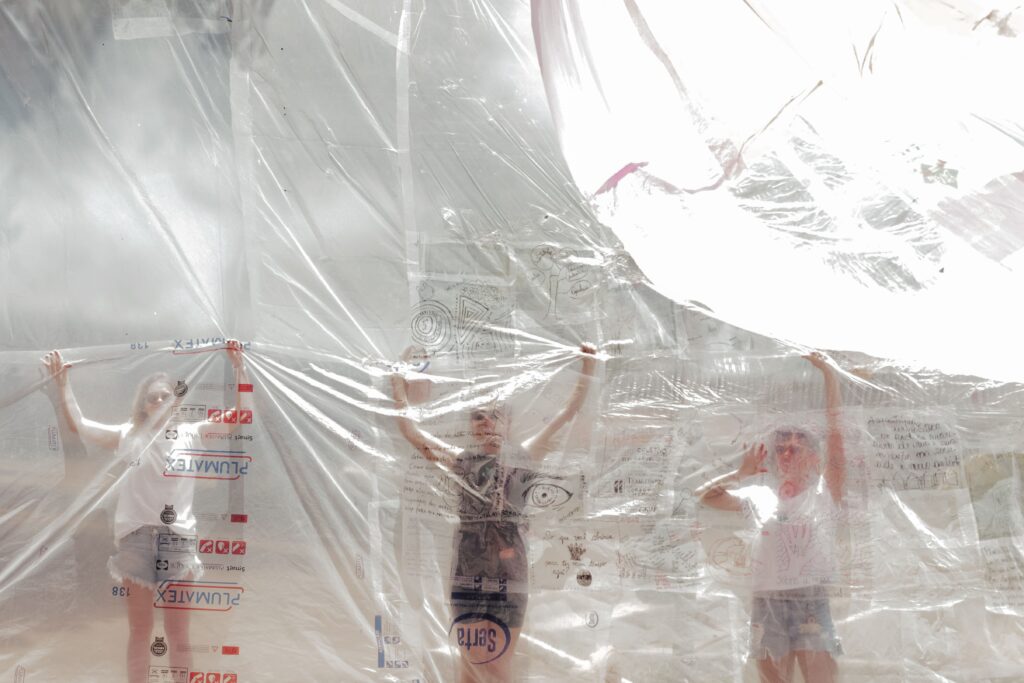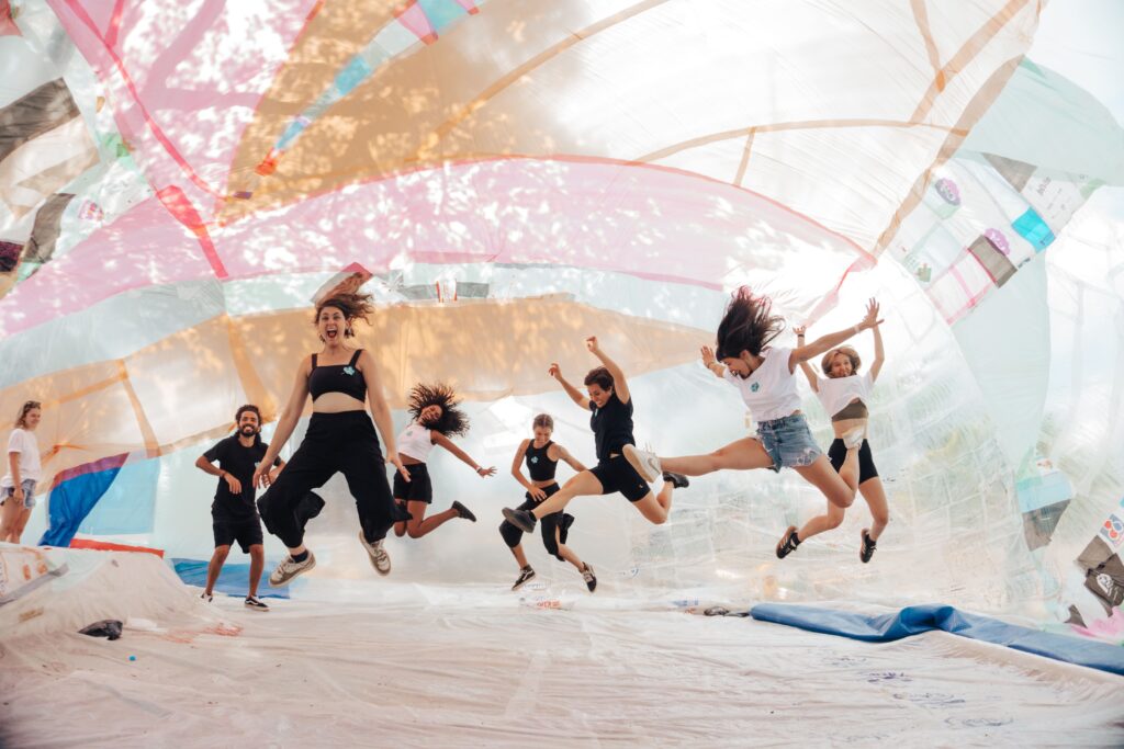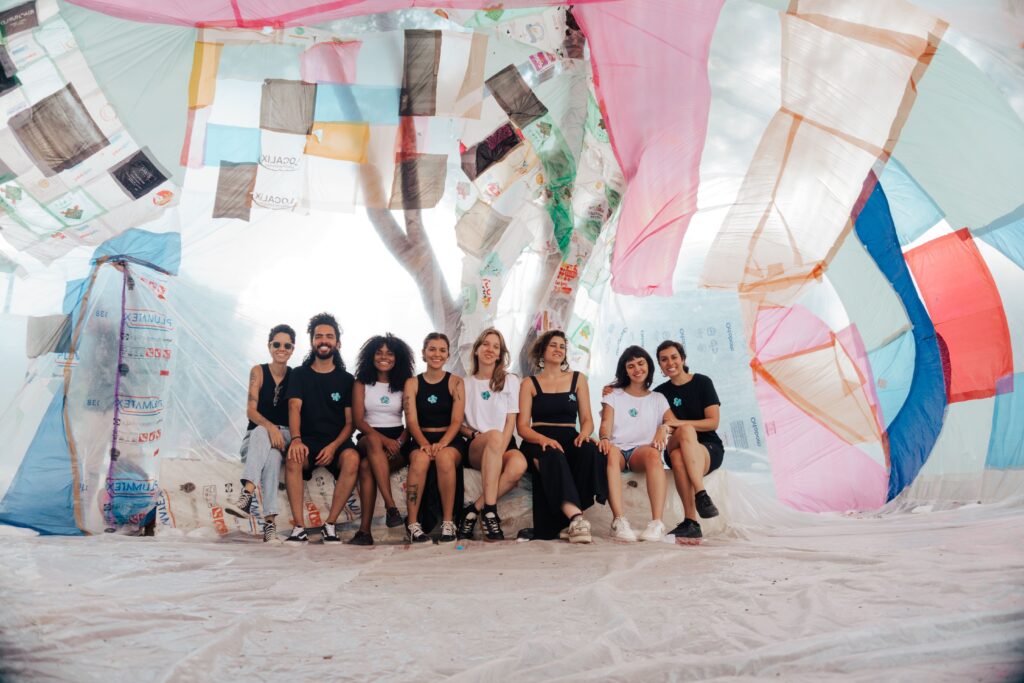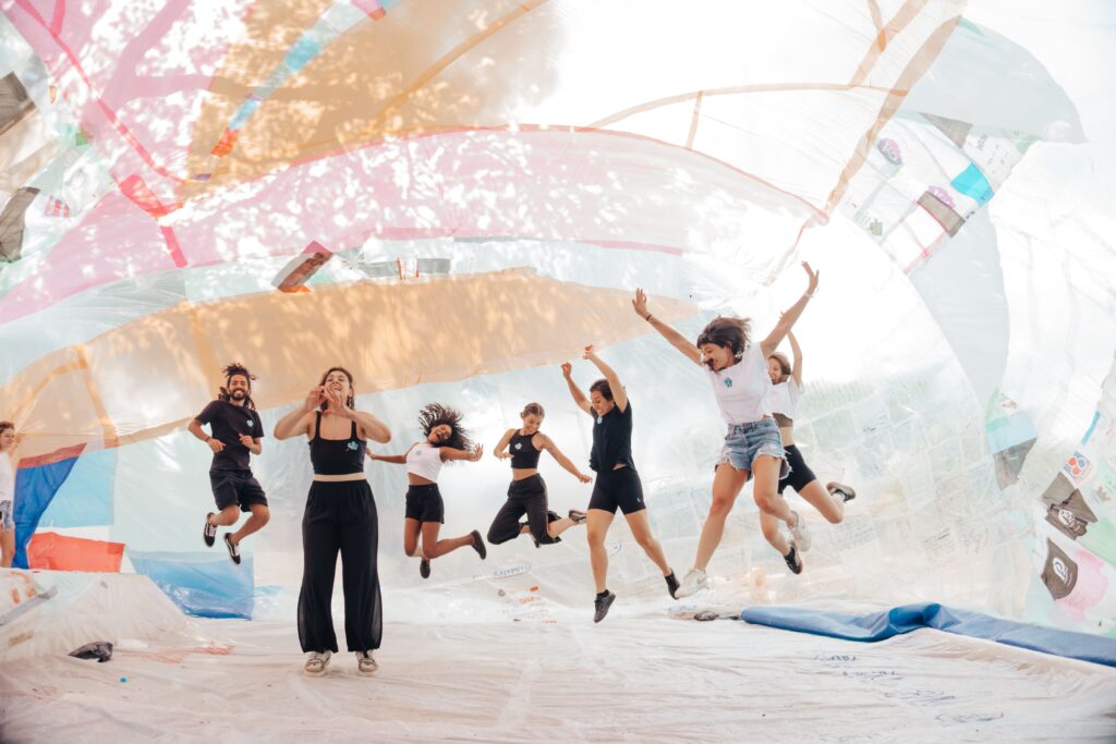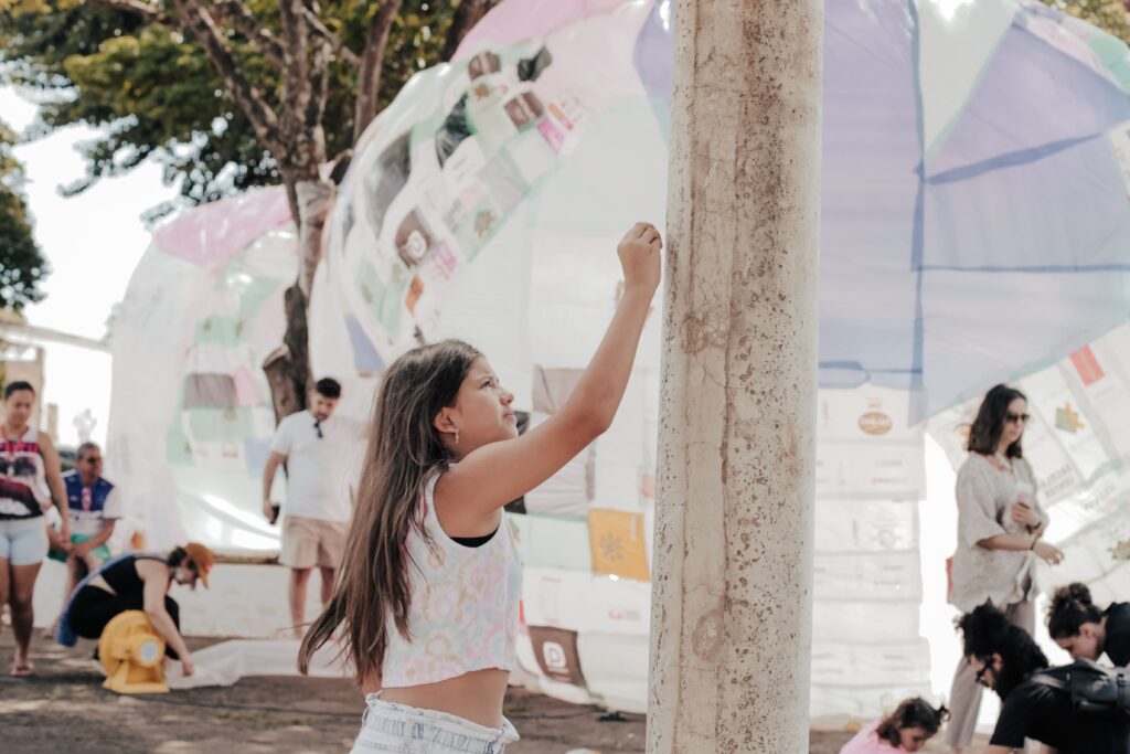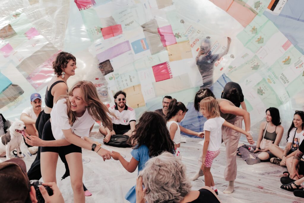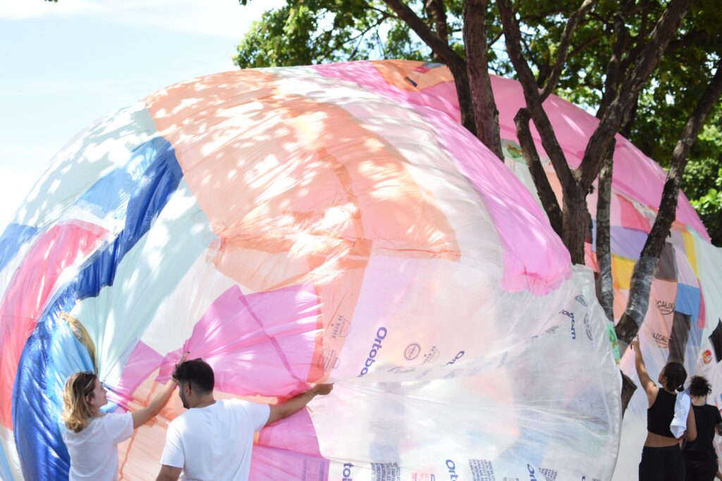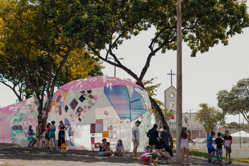 BROTO foi construído por muitas mãos e imaginários. Todas as pessoas que acompanharam o Projeto Flutua Educa, de alguma forma, fizeram parte desse processo, seja nas conversas sobre salas de aula utópicas, cidades lúdicas ou ecossistemas equilibrados. Tudo isso foi decodificado num desenho coletivo de um sonho inflável.