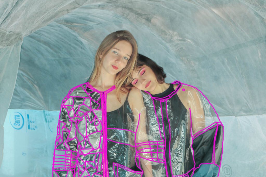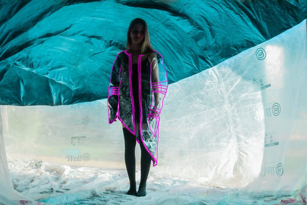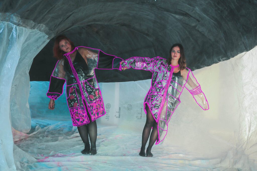 À convite da designer de moda Nicole Zardo e da fotógrafa Tamires Garcia, a instalação Donut se transformou no palco de um encontro entre design, moda, arquitetura e fotografia. As garotas flutuantes se vestiram literalmente de plástico, com peças fruto do projeto “Desobediência”, que visa a criação de capas de chuva destinadas a indivíduos que se identificam com o espírito contemporâneo da “Geração Z” ou “Geração Digital”, produzidas com tecidos oriundos de descarte, e upcycling de materiais não têxteis impermeáveis, como plásticos e nylon de guarda-chuvas descartados.