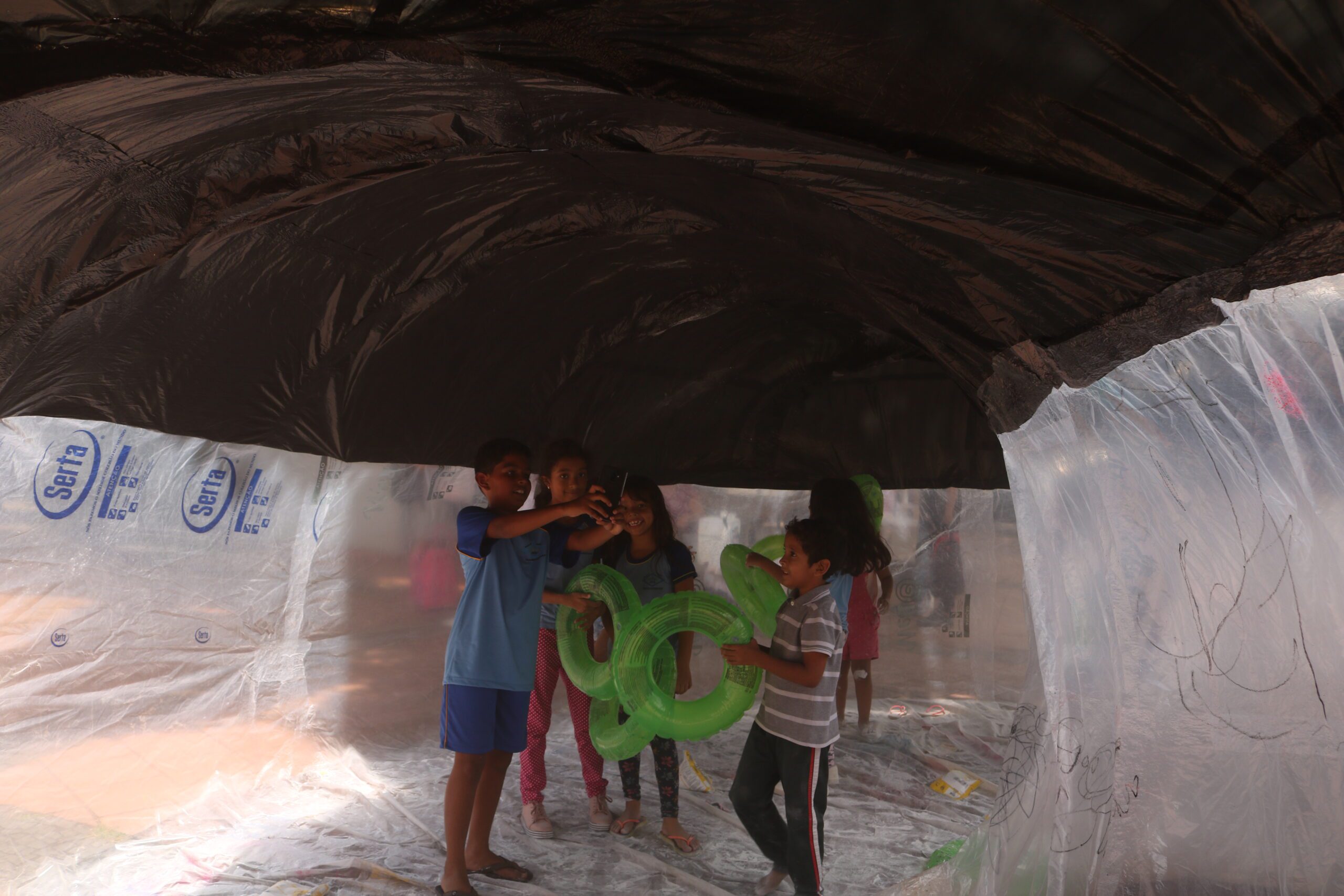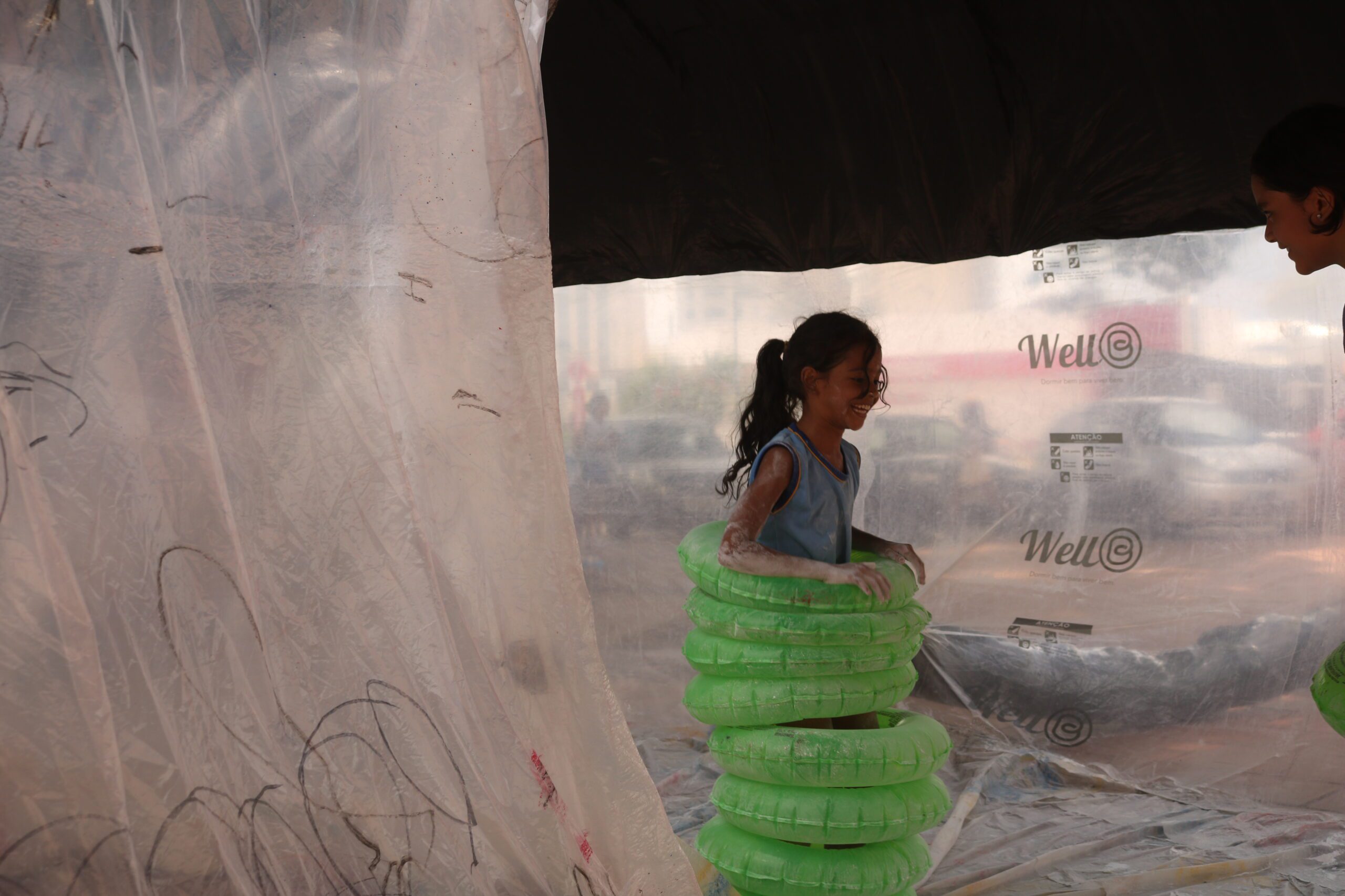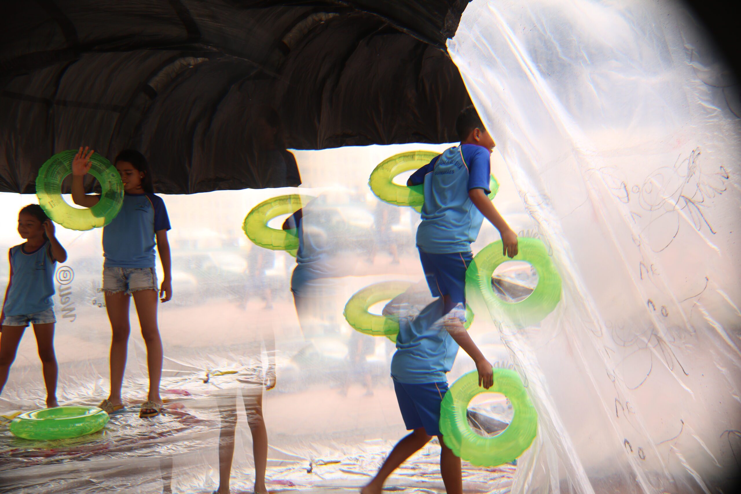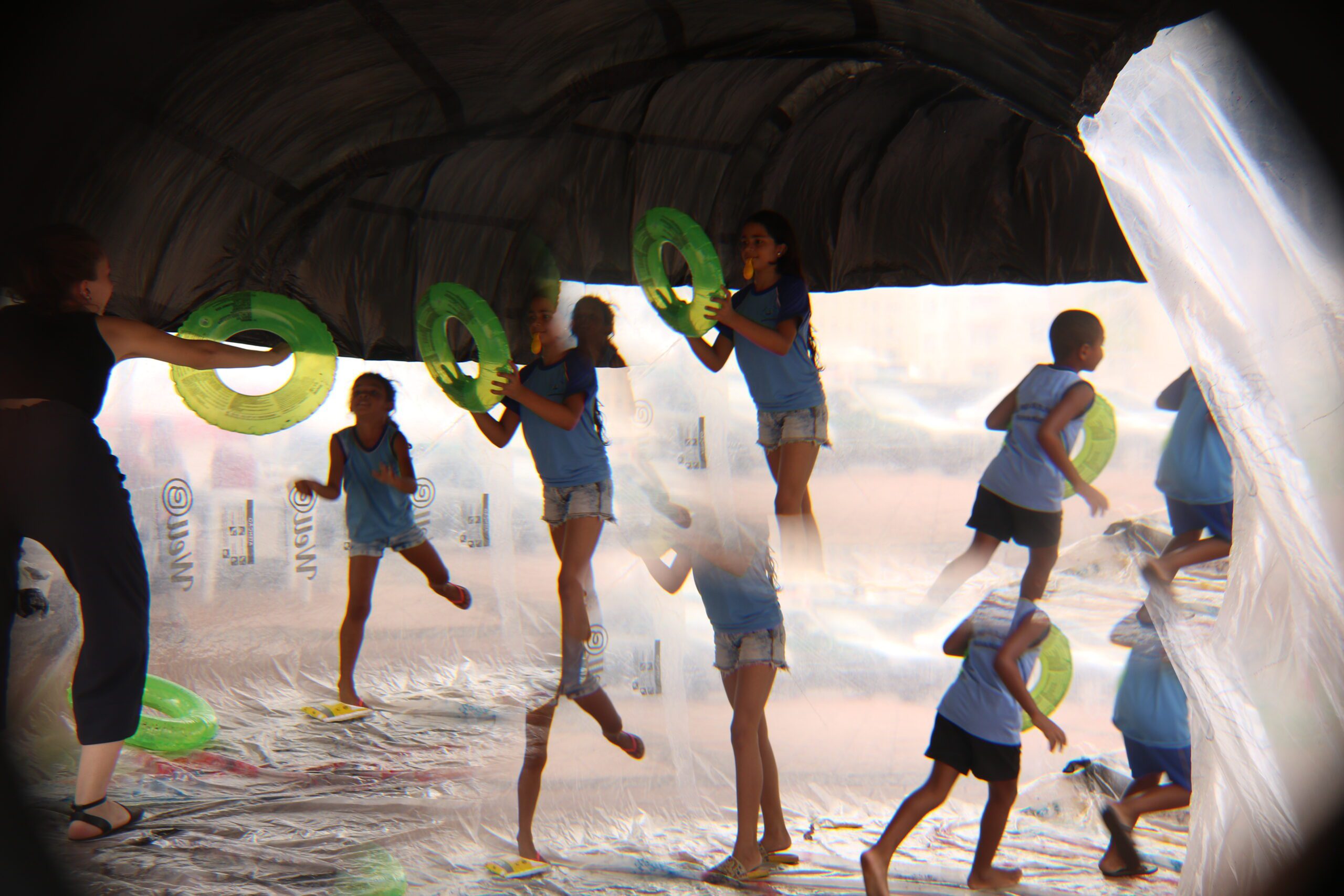Em outro momento, a Escola Estadual Professora Alice Paes, de Uberlândia, nos convidou para participar de uma instalação com o mesmo inflável, para uma feira de ciências. As crianças se divertiram no espaço durante uma manhã inteira e também se conscientizaram acerca do impacto do material plástico na natureza.