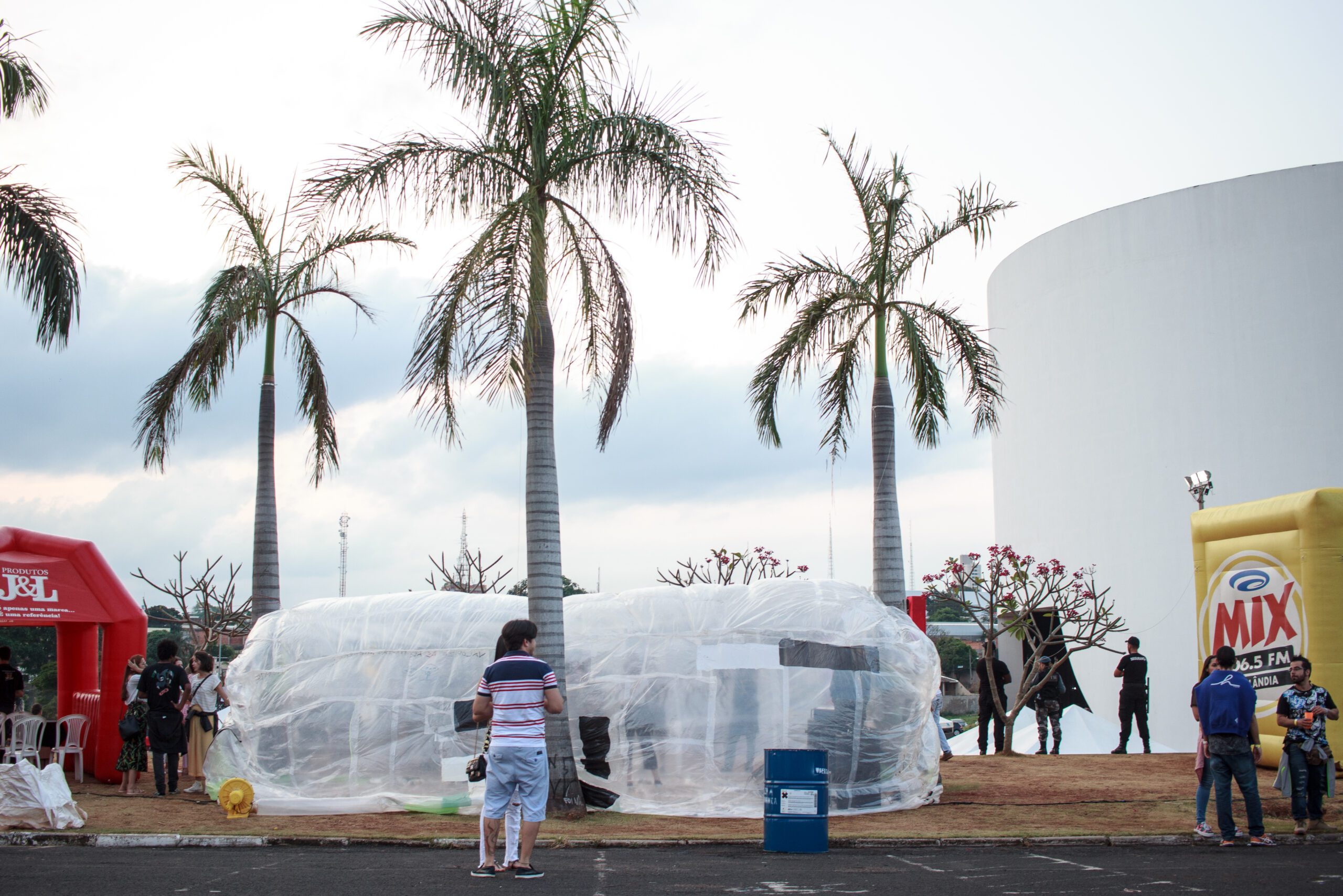 O projeto foi instalado no espaço externo do Teatro Municipal de Uberlândia, projetado por Oscar Niemeyer. Na esplanada, foram espalhados tambores customizados por nós, para que ali fossem descartados os resíduos gerados no evento para destino de reciclagem.