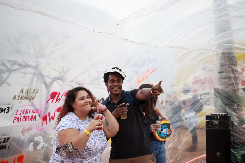 A bolha abriu espaço para o Das Minas Gerais Hip Hop (DMG) cantar e promover batalha de rima, e para o DJ Deni tocar. Pensada com o engenheiro ambiental Rodrigo Feres, que realizou o projeto de interação artística com as luzes de LED, a inflável também permitiu que qualquer um que por ali passasse intervisse na estética das paredes de plástico com tintas spray.