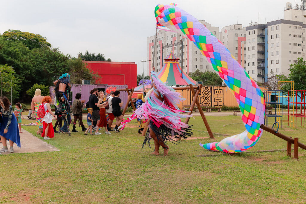 A Trupe em Trânsito, em meio a seus estudos e experimentações para a criação de uma peça de rua inspirada no livro Um Apartamento em Urano, nos convidou para conduzir uma oficina onde compartilhamos nossas técnicas e métodos – com foco especial na construção de birutas – para que o grupo pudesse produzir a cenografia do espetáculo.